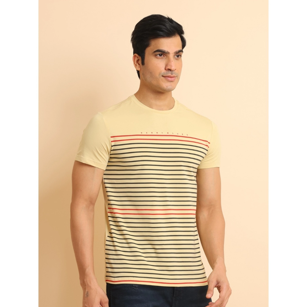 Generic Men’s Casual Cotton Printed Round Neck Half Sleeve T-Shirt (Beige)