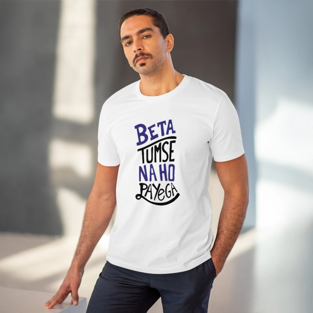 Men’s PC Cotton Tumse Na Ho Payega Printed T Shirt (Color: White, Thread Count: 180GSM)