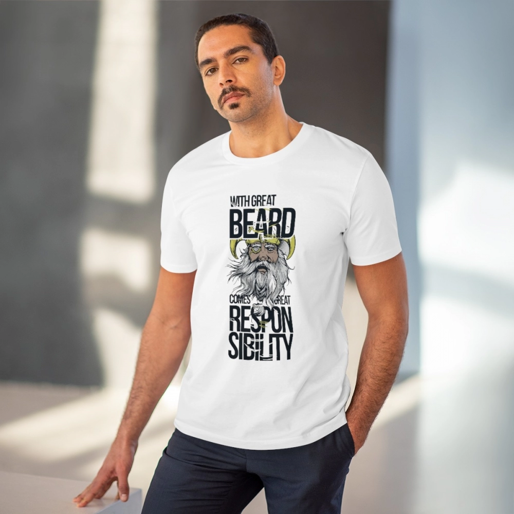 Men’s PC Cotton With Great Beard Comes Printed T Shirt (Color: White, Thread Count: 180GSM)