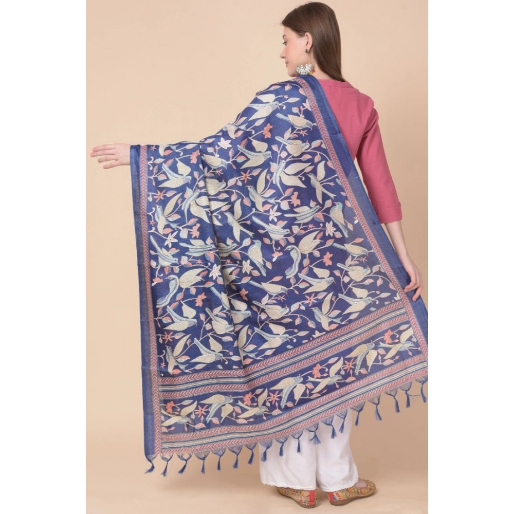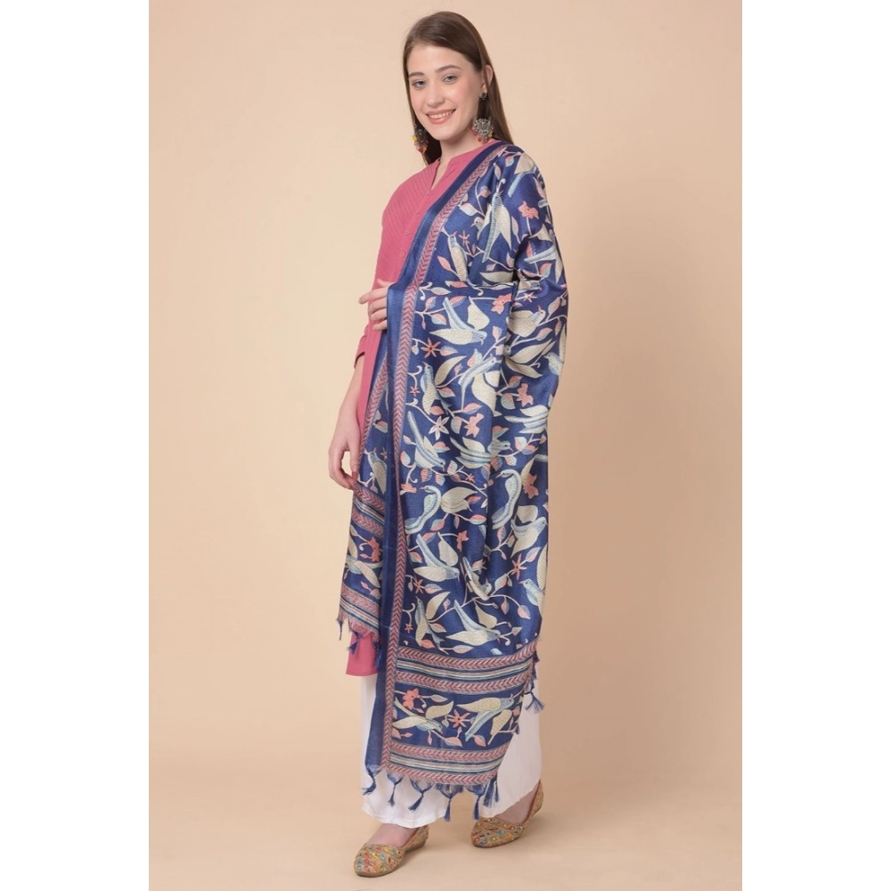 Generic Women’s Art Silk Printed Dupatta (Blue, Length: 2.25 to 2.50 Mtr)