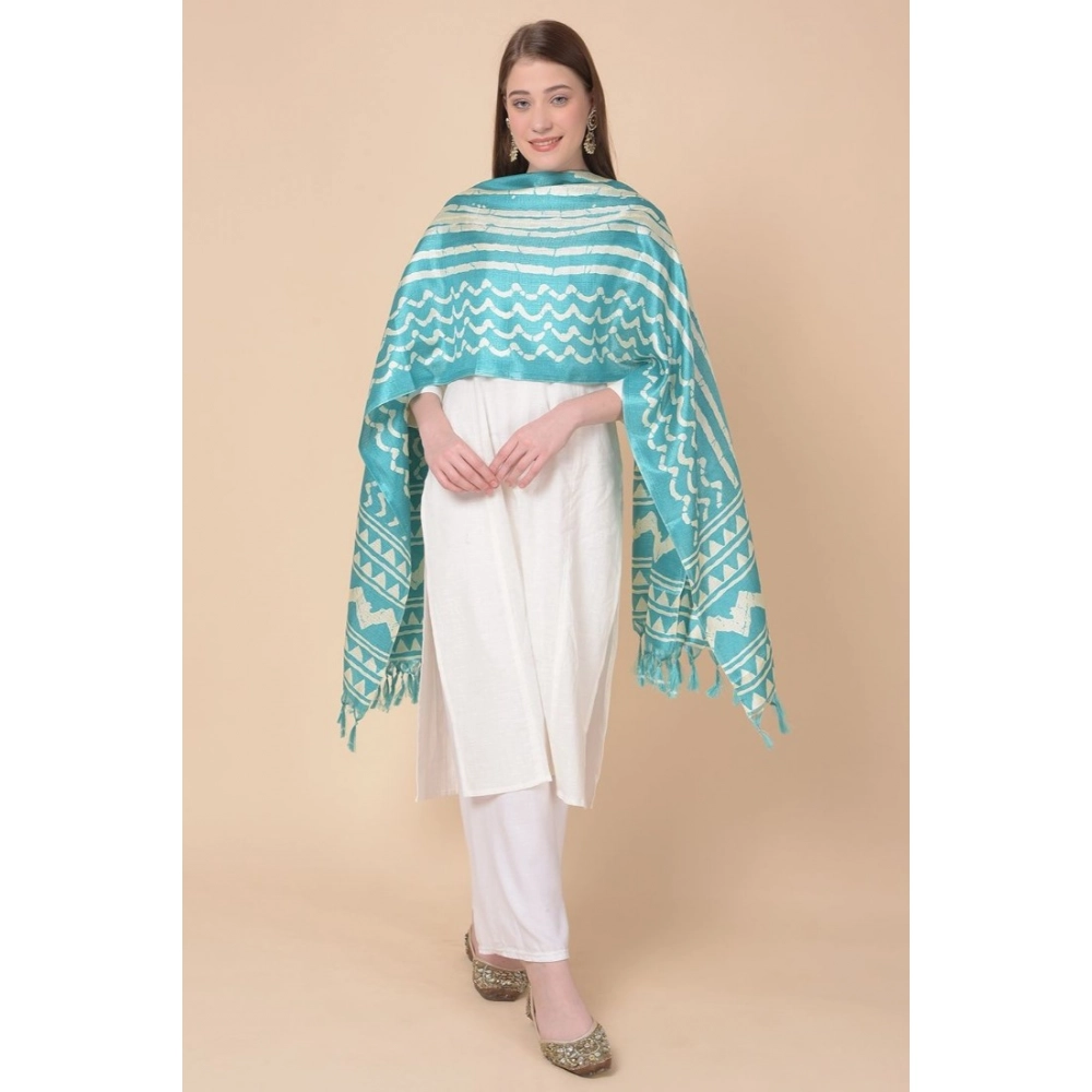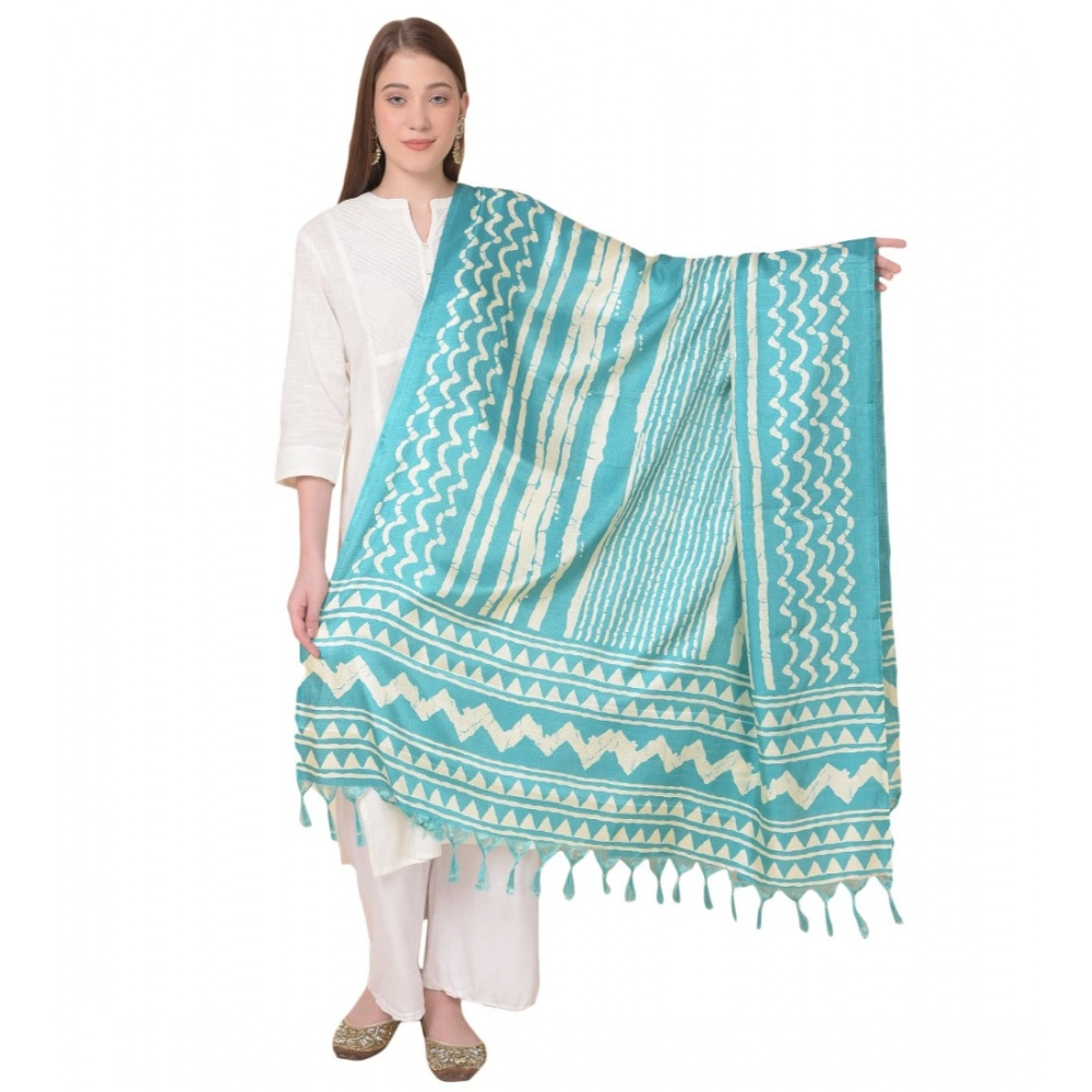 Generic Women’s Art Silk Printed Dupatta (Turquoise, Length: 2.25 to 2.50 Mtr)