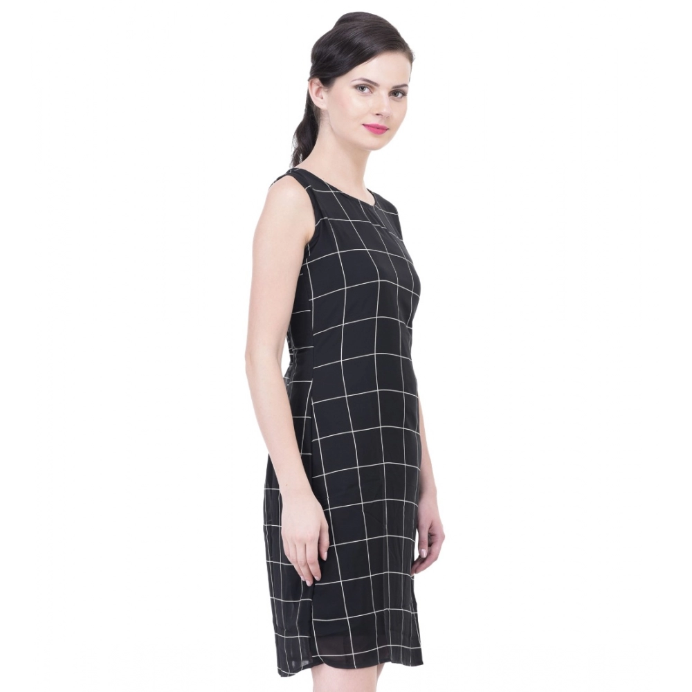 Women’s Cotton Blend Checked Sleeveless Sheath Dress