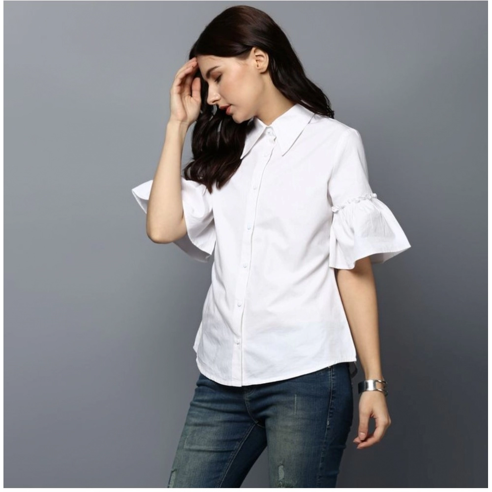 Women’s Cotton Solid Bell Sleeve Top