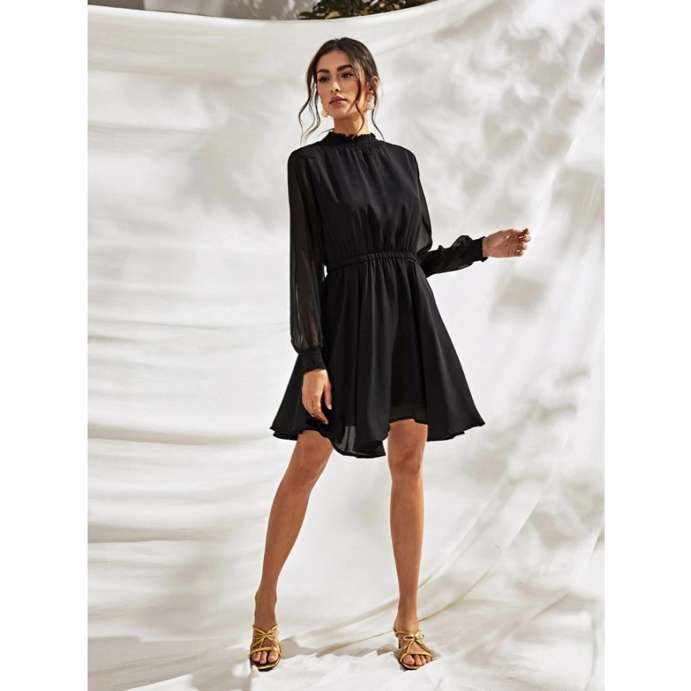 Women’s Fox Georgette Solid High Neck Full Sleeve Dress