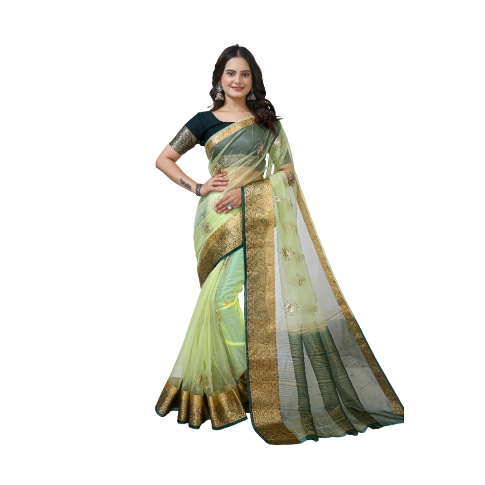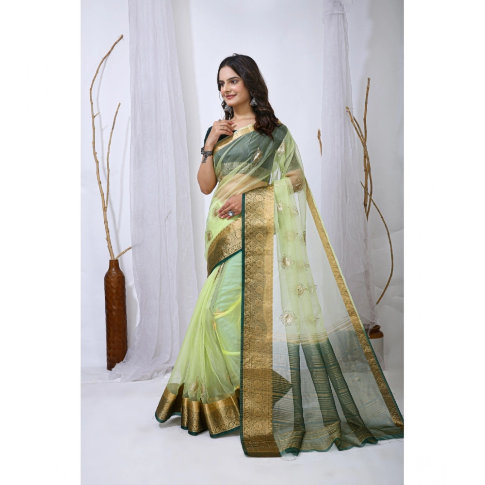 Women’s Organza jacquard Embellished Saree With Unstitched Blouse 5.5Mtr