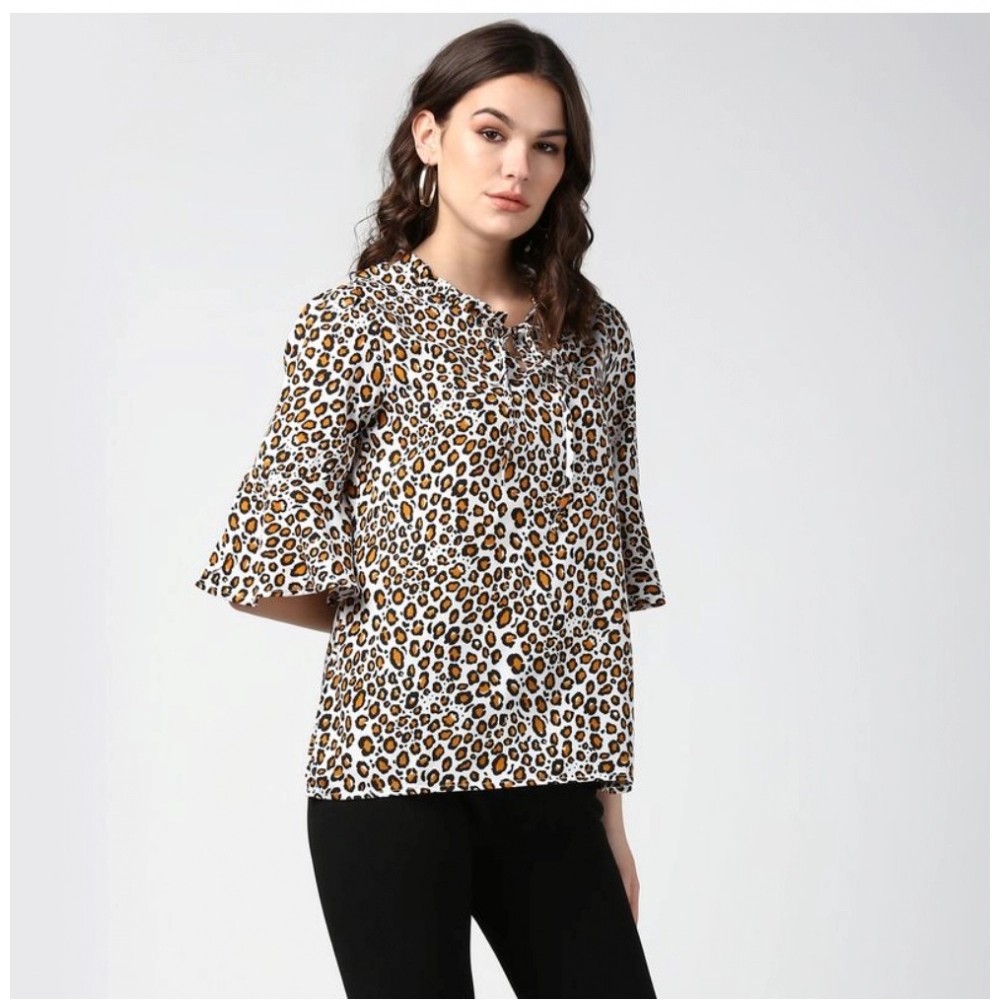 Women’s Polyester Animal Print Bell Sleeve Top