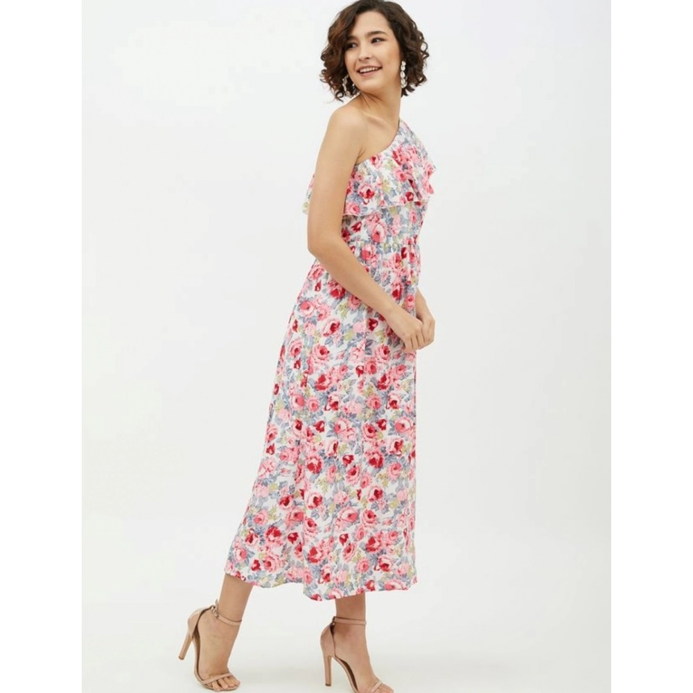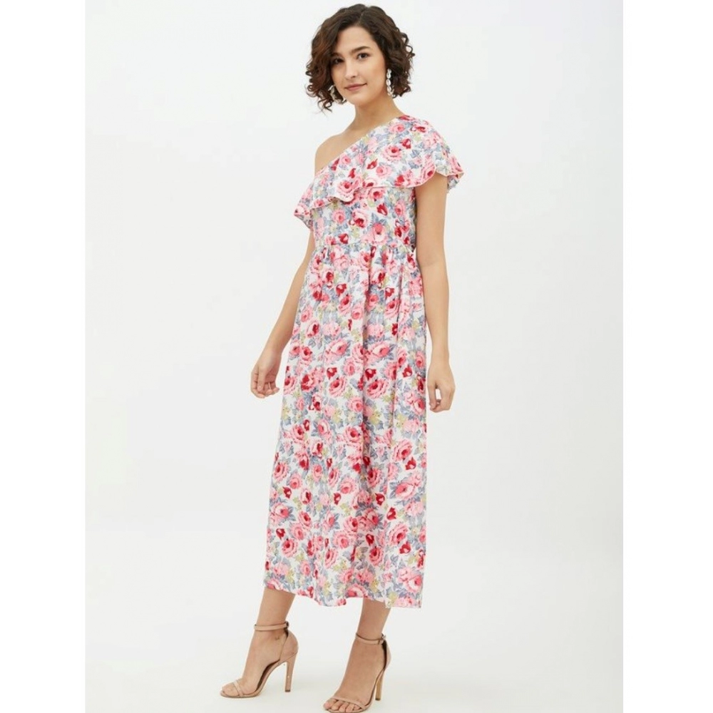 Women’s Polyester Floral One Shoulder Calf-length Dress