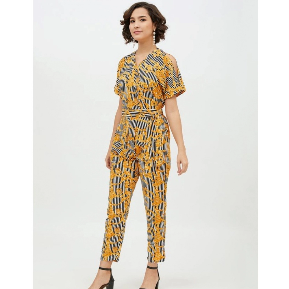 Women’s Polyester Printed Half Sleeve Long Jumpsuit