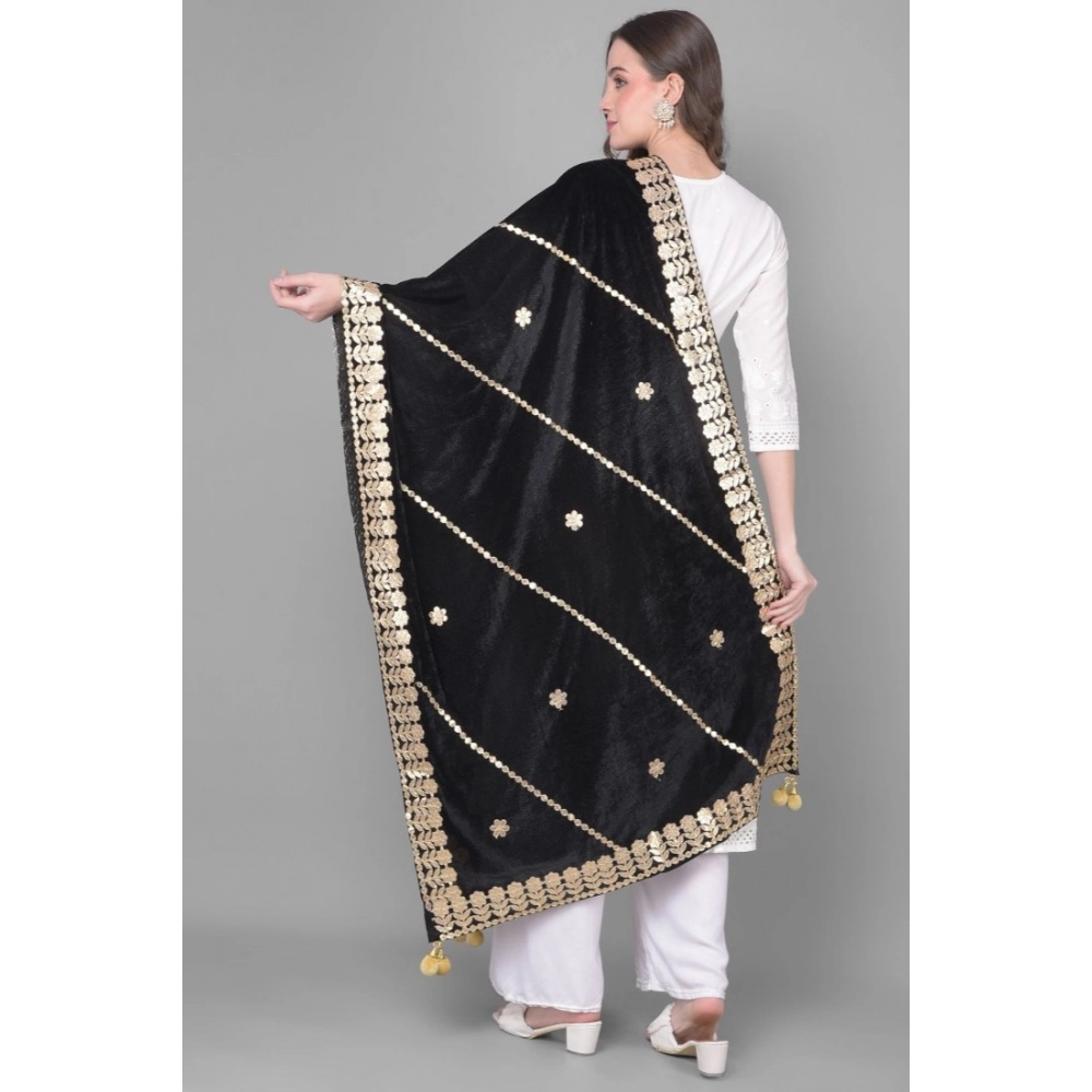 Generic Women’s Velvet Gotta Patti Dupatta (Black, Length: 2.25 to 2.50 Mtr)
